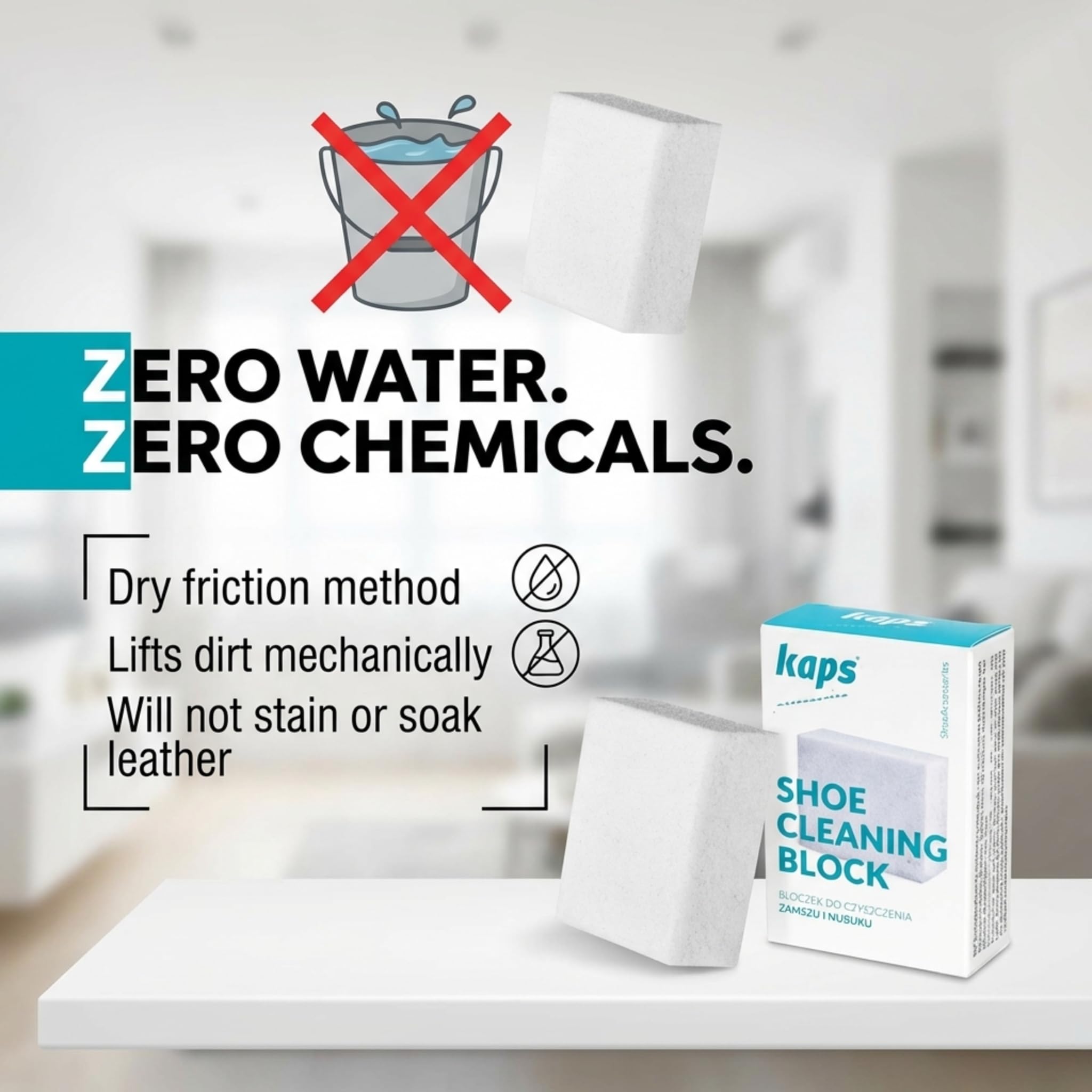 - EFFECTIVE CLEANER: Kaps Block removes stains and dirt from nubuck, suede and velour shoes, boots, furniture upholstery, and care seats.