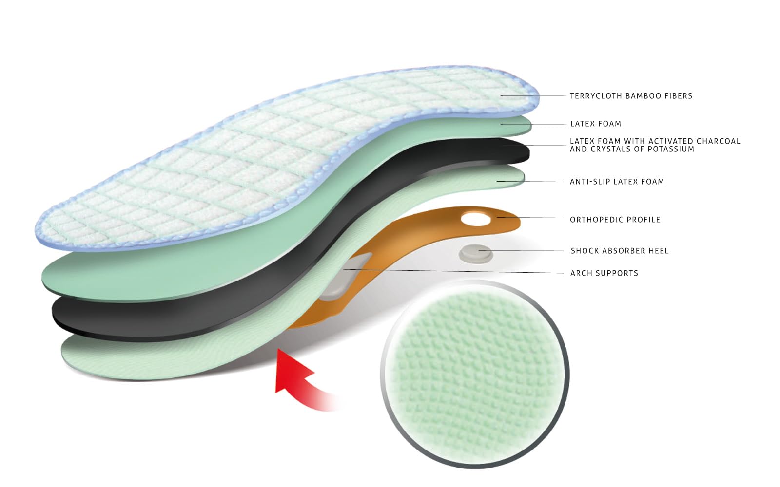 - ACTIVATED CHARCOAL: The insoles contain bamboo fibers, alum and activated charcoal ā all three provide an extremely powerful athleteās foot, mycosis and odour treatment. Protect foot frominfections, tinea and thrush